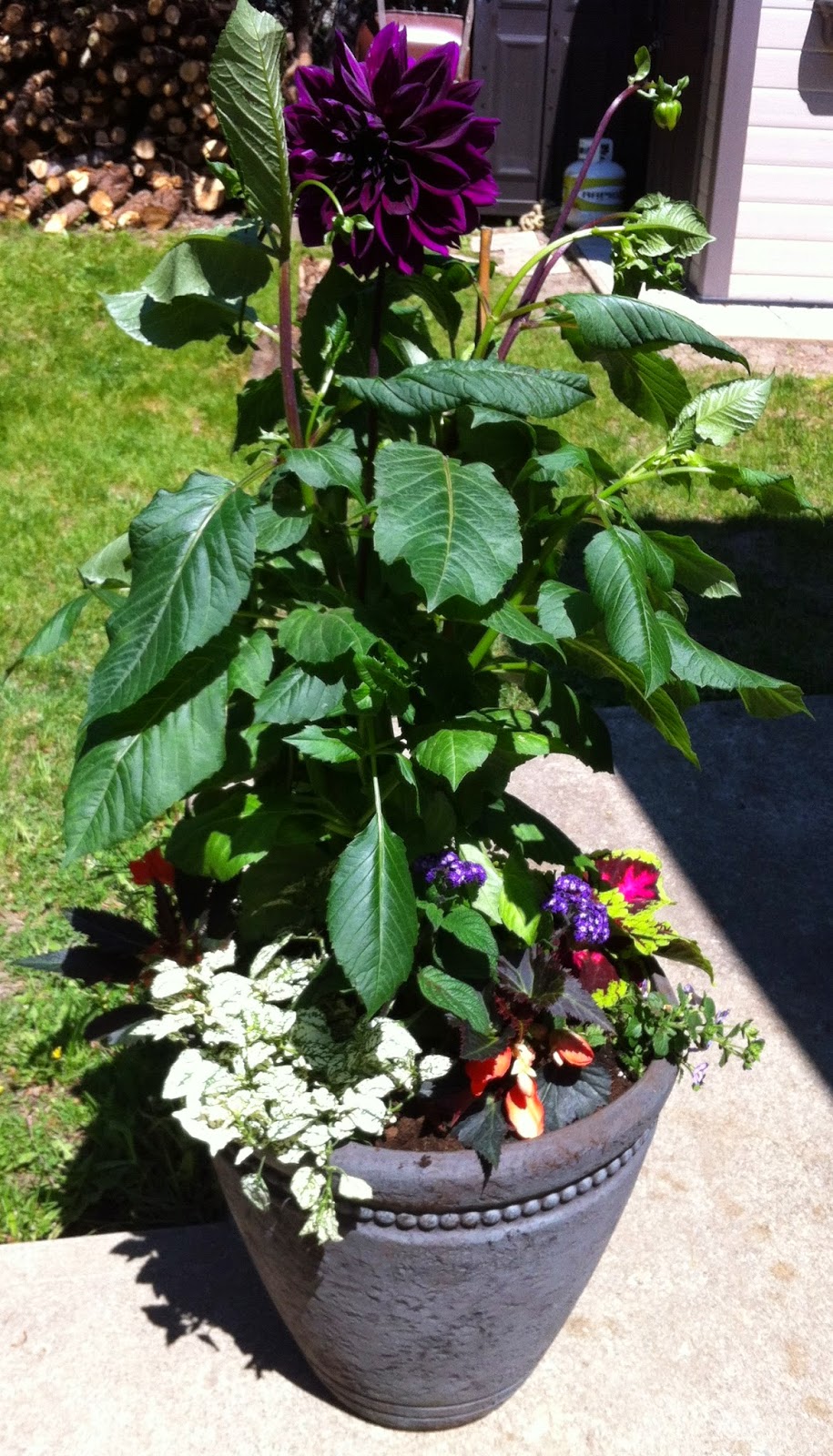 Here's my favorite - the lasagna plant. I'm sorry you can't see the pretty purply flowers around the base. I was too happy to pose the plant and forgot to take one from the side. You can see a couple of them peeping out on the bottom left.